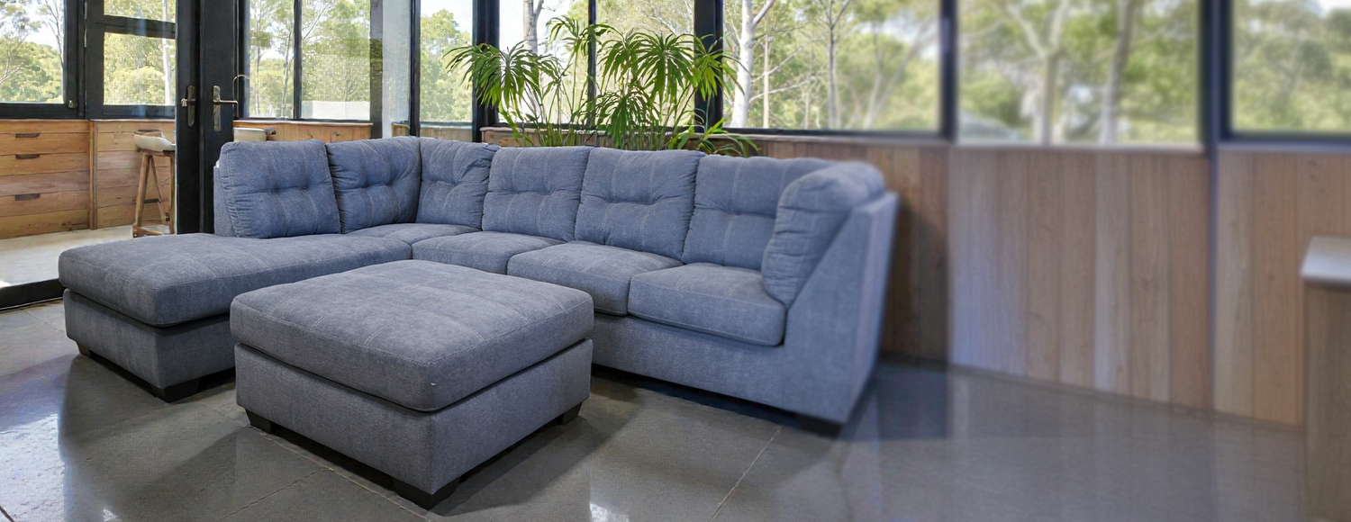 Marlee L-Shaped Lounge with Oversized Ottoman - Denim Blue