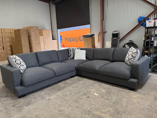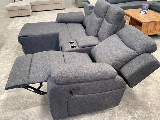 Manhattan 3 Seater Lounge with Recliners - Dark Grey