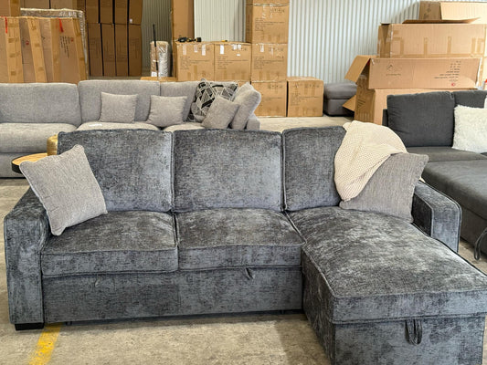 Madison 3 Seater Sofa Bed – Medium Grey - Reversible Chaise & Storage