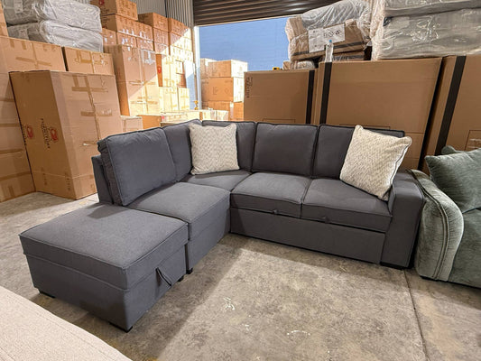 Darcy Pull-Out Sofa Bed – with Ottoman & Storage - Dark Grey