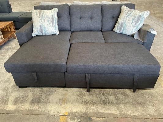 Darcy Pull-Out Sofa Bed – with Ottoman & Storage - Dark Grey