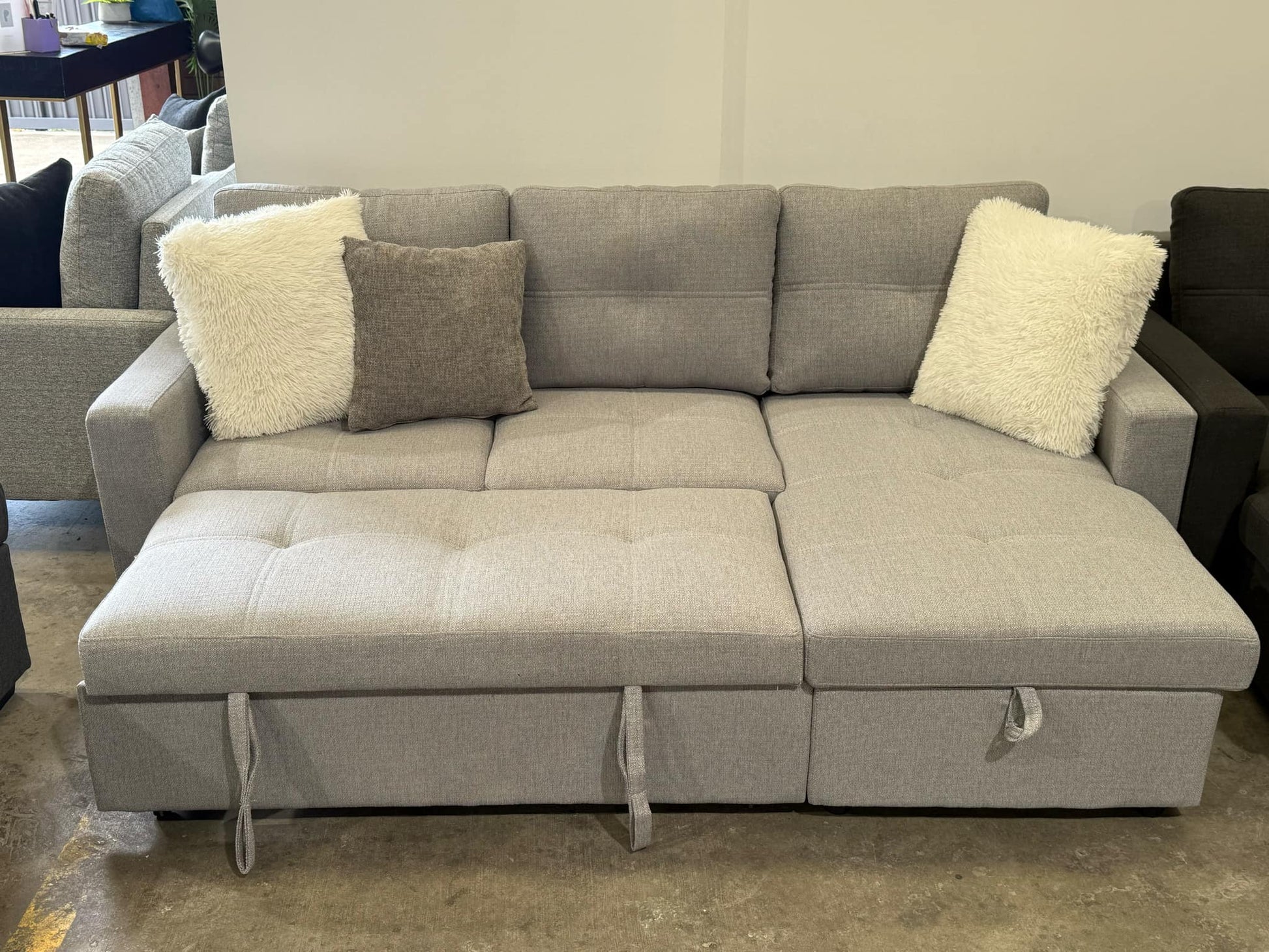 Designed with your space in mind, this sofa effortlessly converts into a comfortable bed, making it the ideal solution for smaller living spaces, apartments or guest rooms. Embrace the elegance of its sleek and modern silhouette, adorned with clean lines and neutral tones that effortlessly complement any decor style.