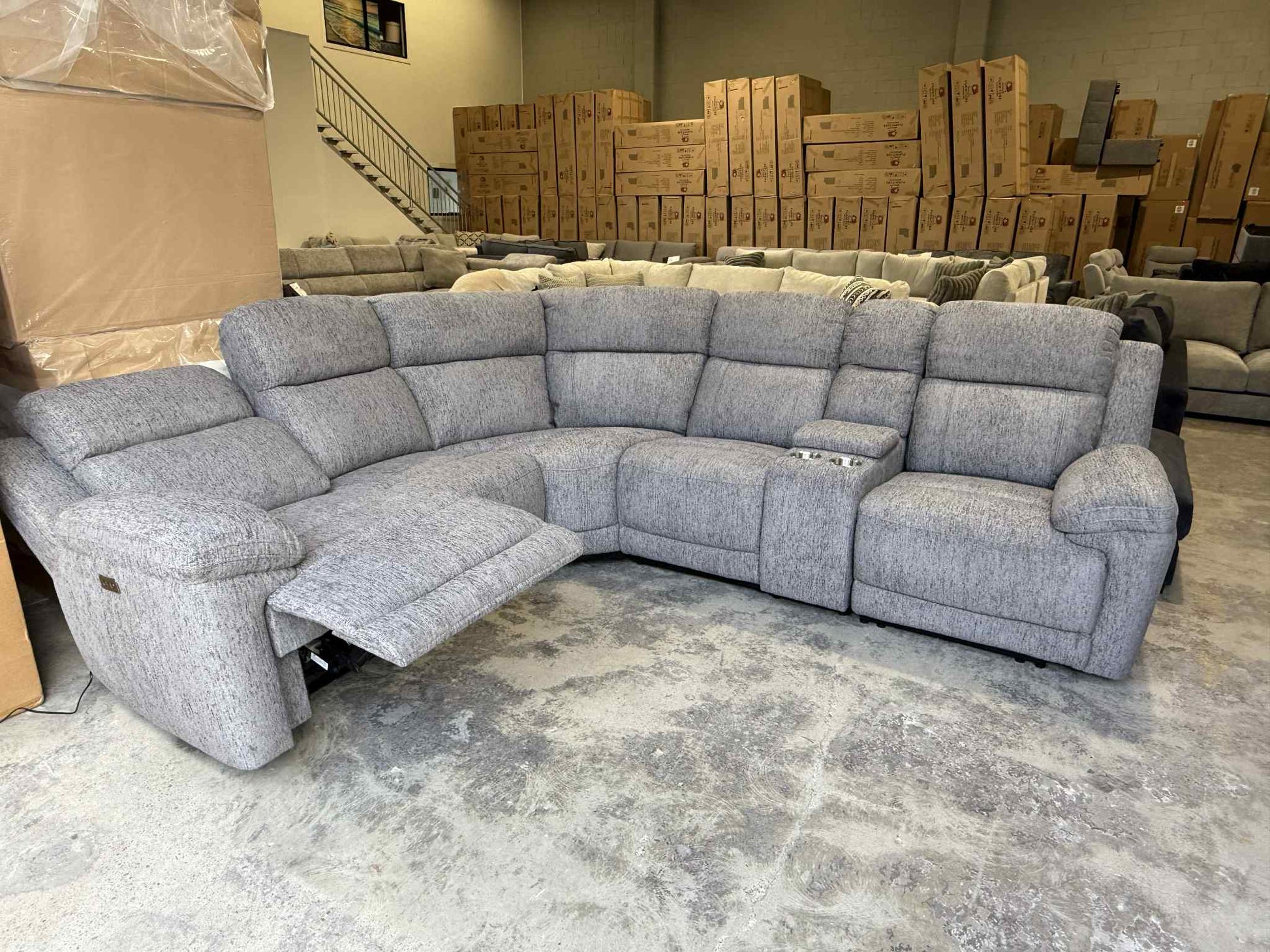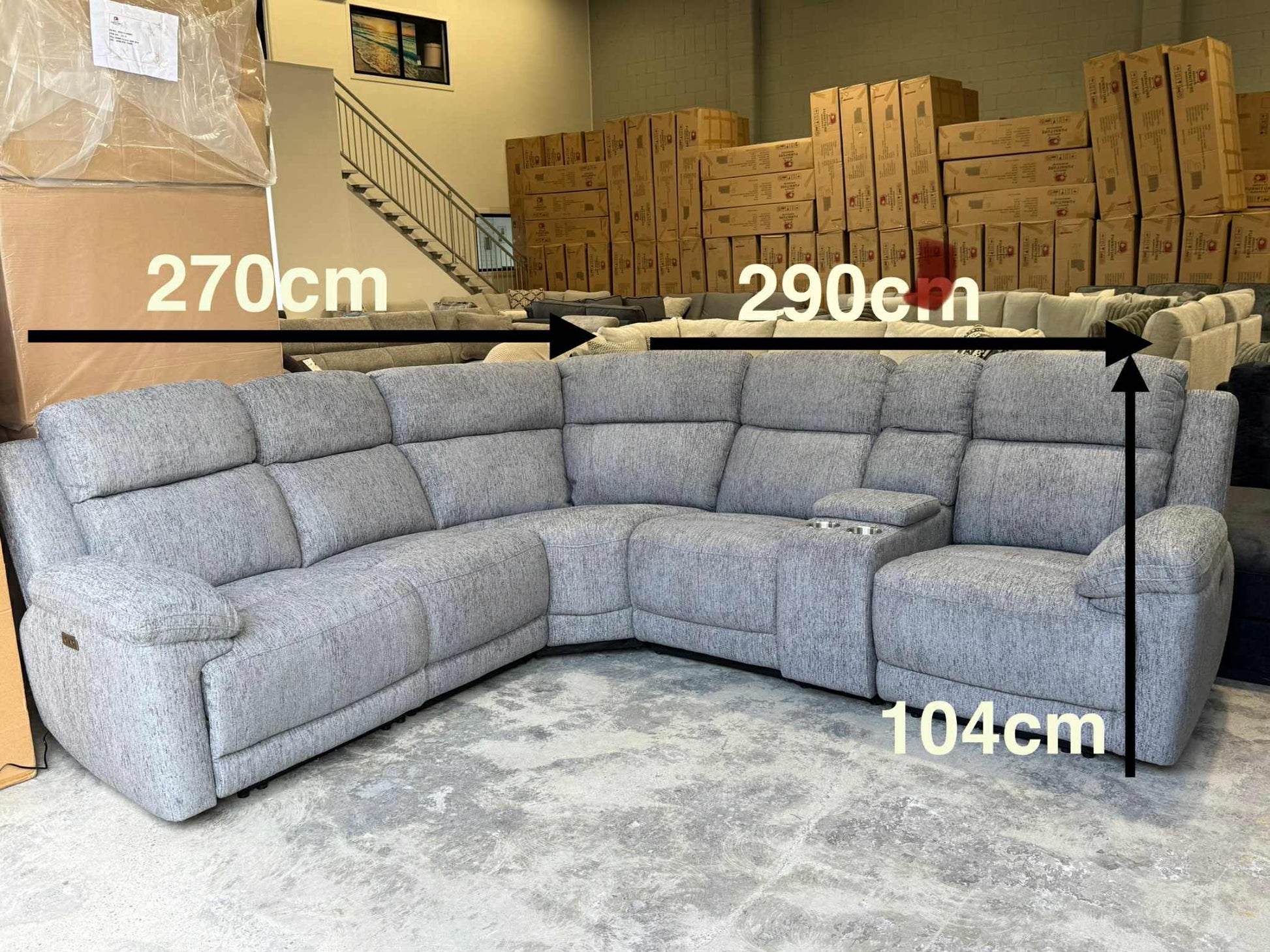 The center console features a hidden storage compartment for remotes, controllers and accessories, plus sleek cup holders designed to keep your drinks secure and living space clutter-free